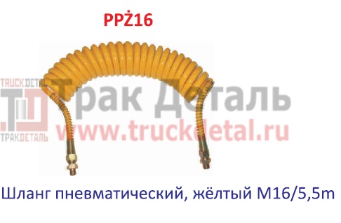 Шланг пневматический спиральный подключения прицепа желтый, HYBSZ - PPZ16